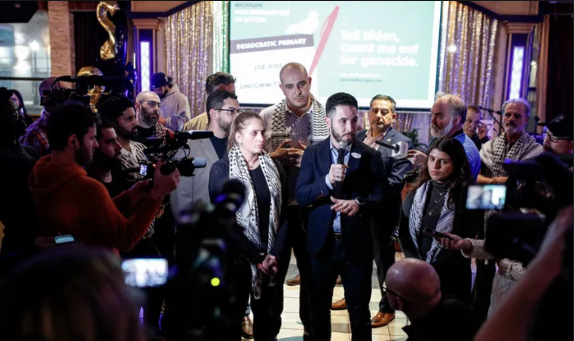 At an election night party, a group that organized a protest against President Biden in Michigan played up the thousands of votes in support of its cause.
