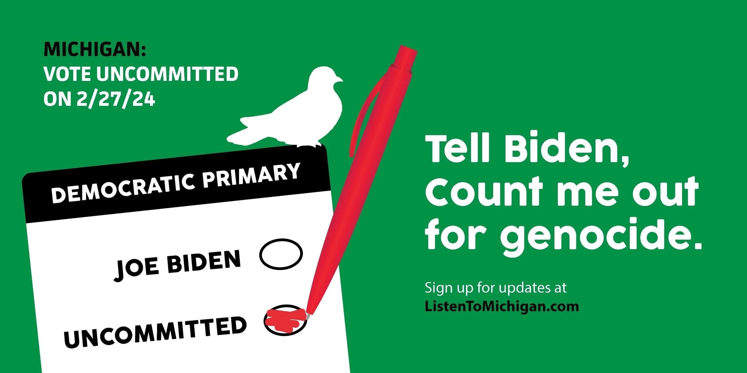 Michigan voters are sending Biden a clear message in the February 27 Democratic primary that he can count us out. We are filling out the UNCOMMITTED bubble because we strongly reject Biden’s funding war and genocide in Gaza.